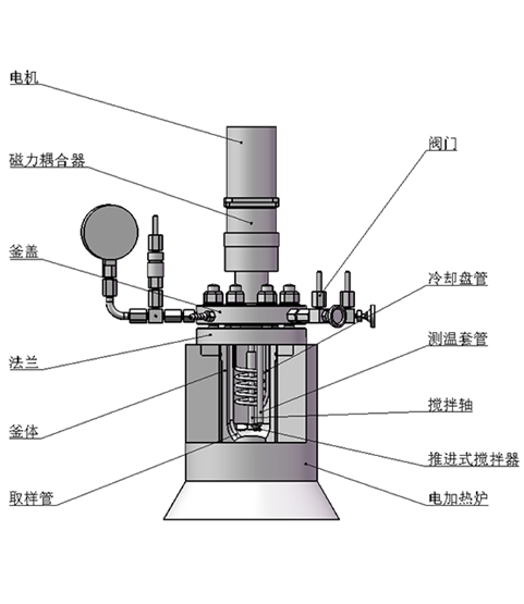 該結構為端面磁力密封裝置,依靠?jì)蓧K強力磁鋼異極相吸的原理通過(guò)磁場(chǎng)穿透密封罩體來(lái)實(shí)現力矩的無(wú)接觸式傳遞,由于電機直接帶動(dòng)攪拌器,故而其攪拌特點(diǎn)是低轉矩高轉速(≤1500r/min),適合攪拌低粘度(cp≤2000mpa.s)或固體顆粒物含量較少的反應物料介質(zhì)體系。