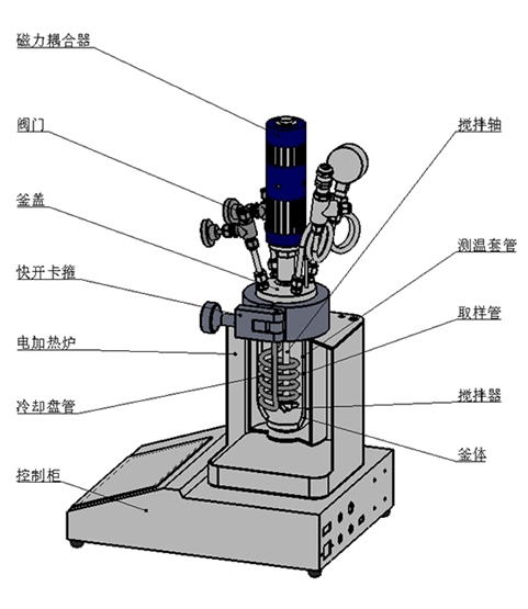 產(chǎn)品功能和特點(diǎn):臺式,機電一體化設計,主體快開(kāi)設計,開(kāi)閉釜操作方便、快捷,高扭矩磁力傳動(dòng),配優(yōu)選電機,提升運行穩定性。攪拌支持定制槳葉類(lèi)型,適配多樣化攪拌需求;加熱爐傳熱快,均熱效果好,效率可調;真彩色觸控屏,模塊化顯示,控制界面操作簡(jiǎn)潔;支持遠程控制,具備RS485通訊口,配上位機軟件,可顯示工作時(shí)間/溫度/轉速/壓力,PID自整定控溫精準;具備安全連鎖功能,超溫超壓報警;具備數據采集,記錄以及報表導出功能;支持選配加料、計量、取樣、冷凝等擴展功能。